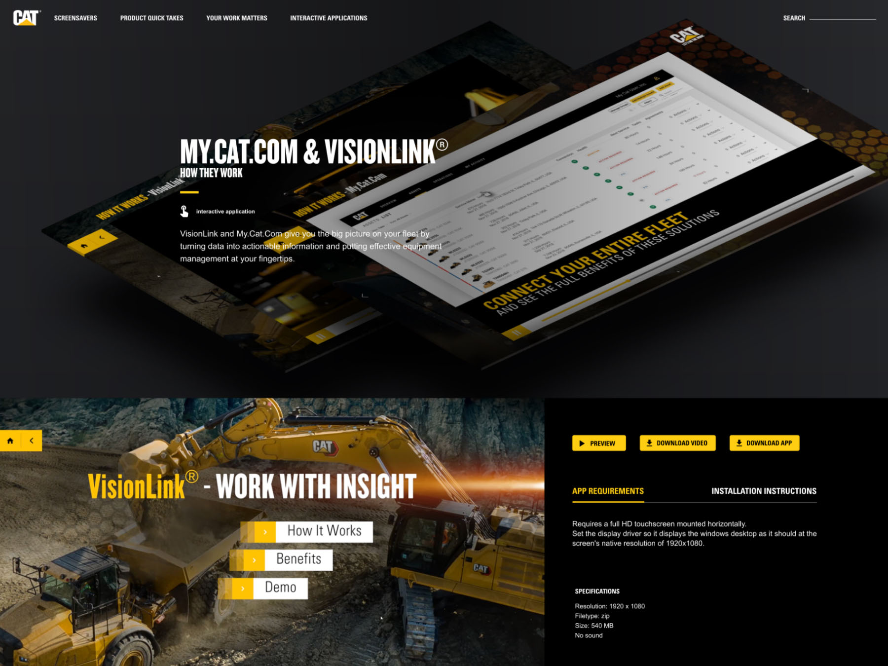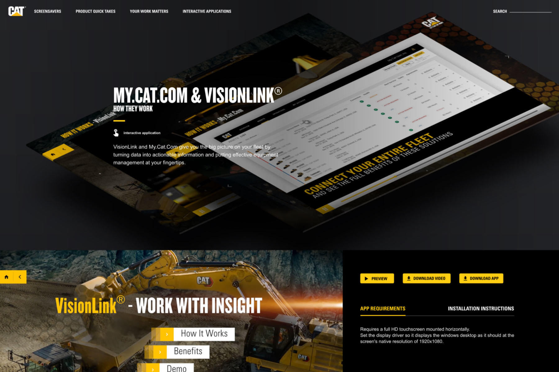 The website also furnishes resources like product brochures, safety services, and financing options for potential customers, positioning Cat as a comprehensive provider of heavy machinery and related services.