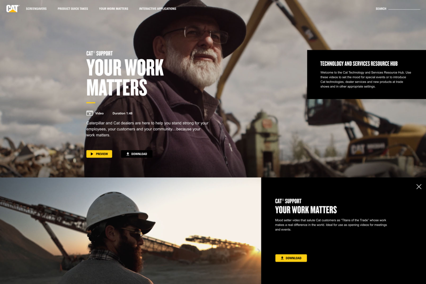 The website also furnishes resources like product brochures, safety services, and financing options for potential customers, positioning Cat as a comprehensive provider of heavy machinery and related services.